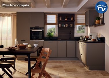 Découvrez toute notre variété de cuisines : cuisine grise, cuisine beige, cuisine bleue, cuisine verte, cuisine blanche, cuisine noire, cuisine colorée.