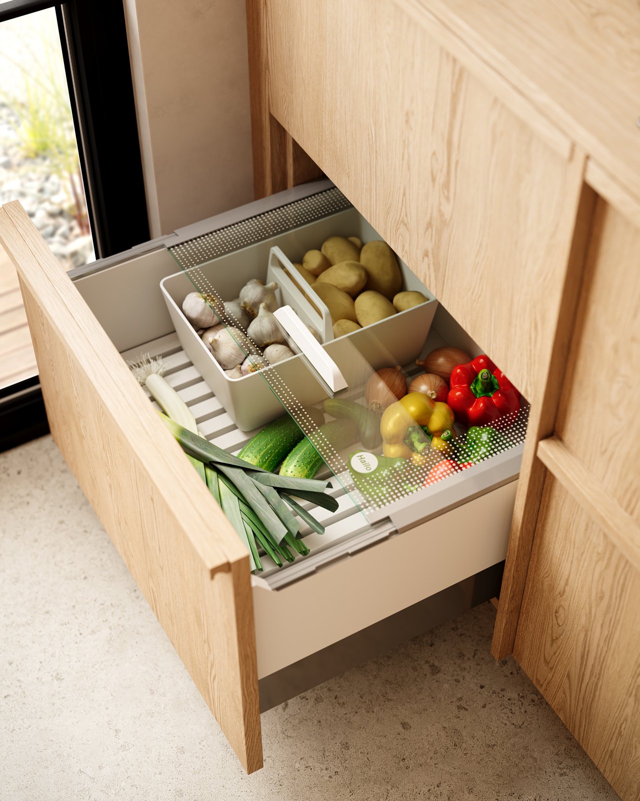 Fini les fruits qui traînent sur le plan de travail ! Discrète et bien intégrée, la Pantry-box, au design épuré, accueille vos fruits et légumes du quotidien, tout en prolongeant leur fraîcheur et leur durée de vie.