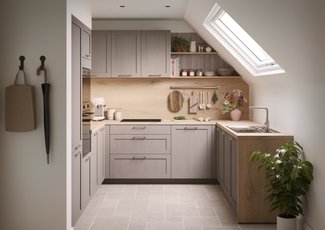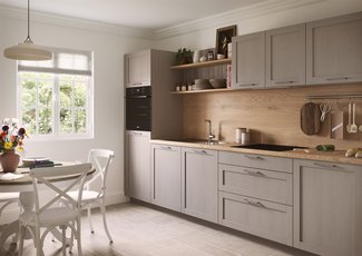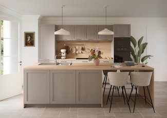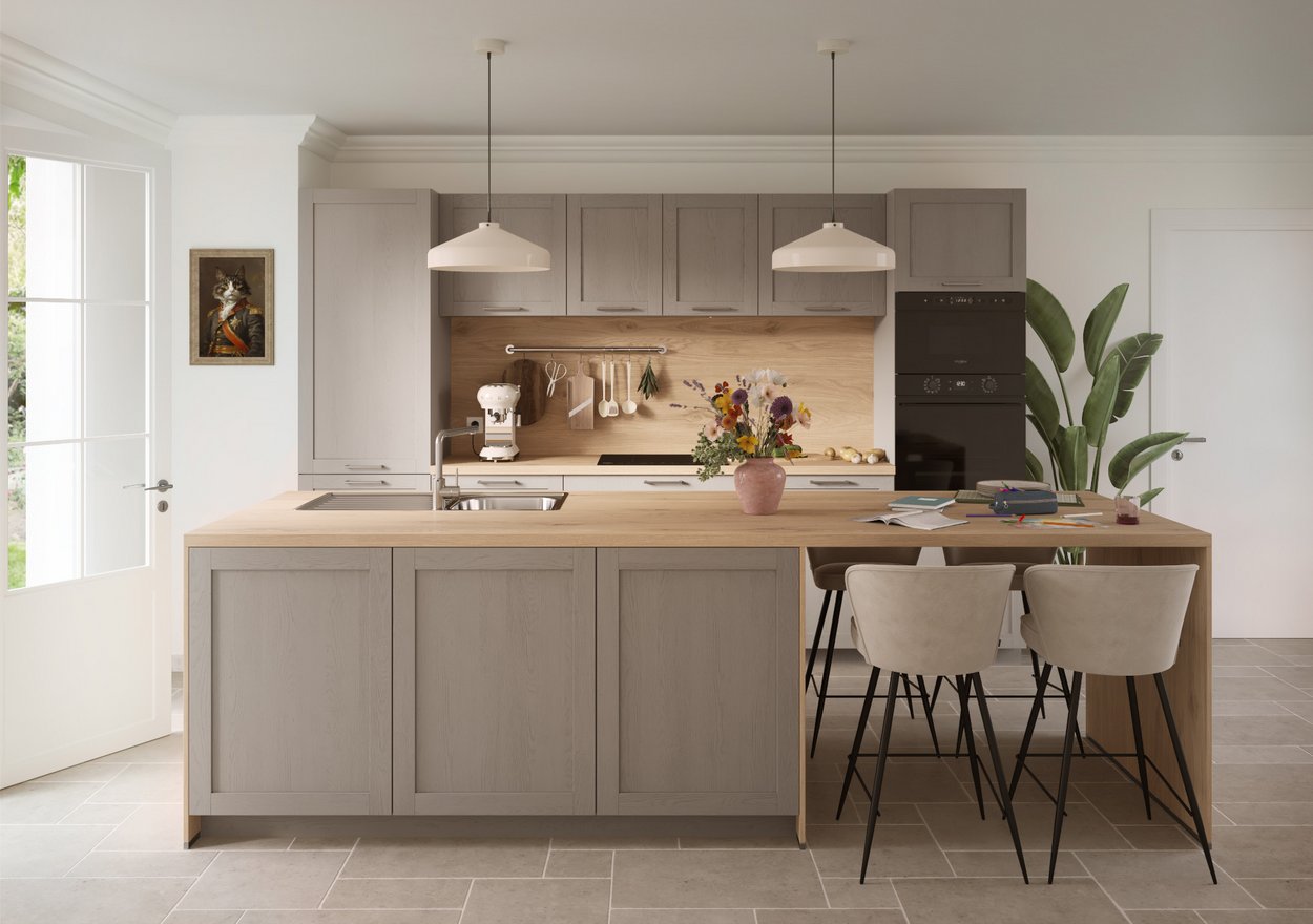 Solea Cottage incarne l’équilibre parfait entre authenticité et raffinement. Ses façades à cadre évoquent l’esprit des maisons de campagne, tandis que ses lignes sobres et ses finitions délicates lui confèrent une allure intemporelle. La rencontre du bois du plan de travail et des façades "macchiato" subtilement texturées crée une atmosphère douce et lumineuse, propice au partage et à la convivialité. Les jeux de lumière et les contrastes délicats soulignent la beauté naturelle de l’ensemble.